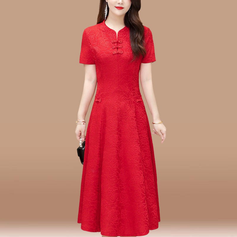 Buy red baju kurung ala cheongsam style with pants in singapore,singapore.